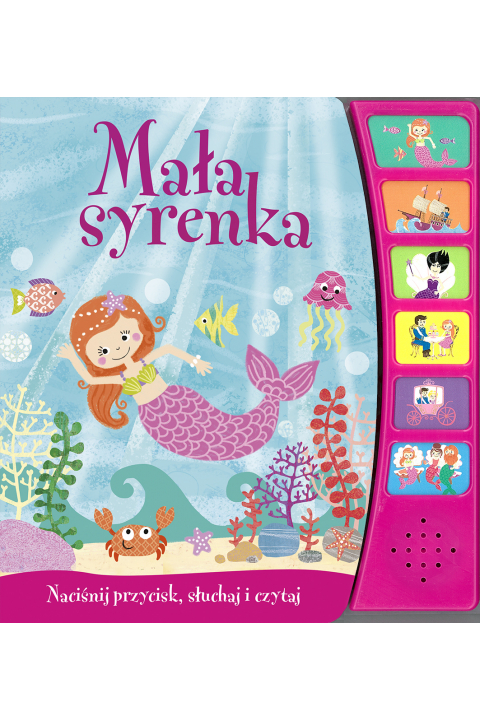 "Oto mała syrenka. Uwielbia życie w wodzie i wesołe zabawy z morskimi zwierzętami, ale bardzo by chciała poznać świat ludzi i życie na lądzie." Przenieś się do krainy bajek. Naciskaj kolejno sześć dźwiękowych przycisków i słuchaj ekscytującej opowieści o syrence, która pokochała królewicza.